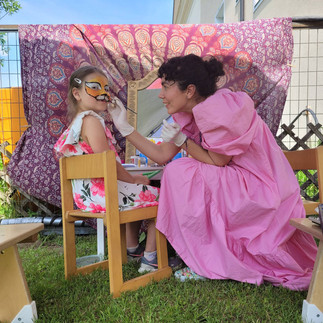 Um 15:30 leerte sich dann der Garten und alle Gäste versammelten sich im Veranstaltungssaal im Kloster St. Anna zur unterhaltsamen Aufführung "Fuchs und Rabe". Danach ging es wieder weiter im Garten unseres Kindergartens. Während sich die Erwachsenen bei gekühlten Getränken unterhielten, hatten die Kinder die Möglichkeit, sich am Spielplatz auszutoben oder an verschiedenen Spielstationen teilzunehmen.